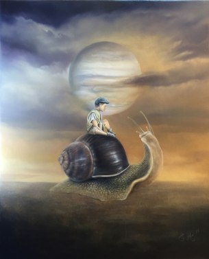 En su última y actual etapa pictórica nos habla de la representación simbólica del paso del tiempo, de la nostálgia del hombre por su pasado natural, transcendencia y existencialismo con tasgos fantásticos y románticos… donde la belleza y el ser se desvanecen y se funden en entornos hostiles y efímeros.